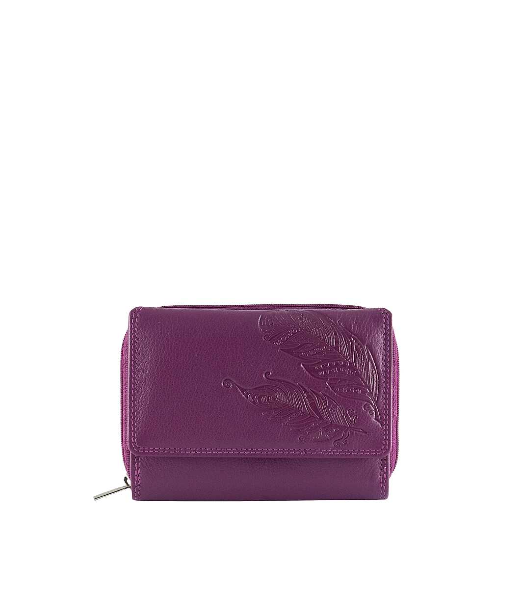 Friedrich|23 Portofel din piele mov pentru femei, cu motive spectaculoase, cu protecție RFID Protecție RFID - protejează cardurile bancare contactless de citirea neautorizată a datelor și de retragerea banilor