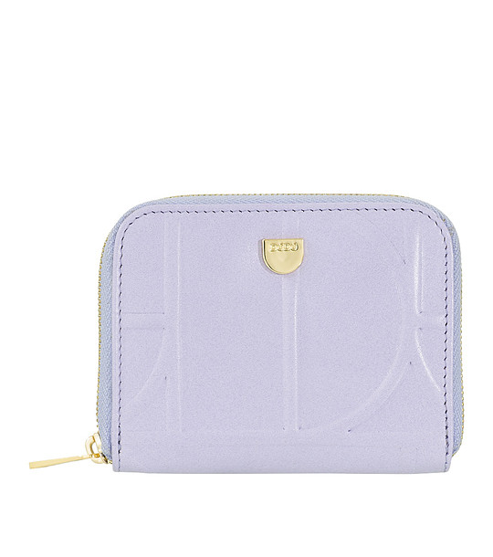Portmoneu cu fermoar, confecționat din piele naturală de vițel nappa embosată.
