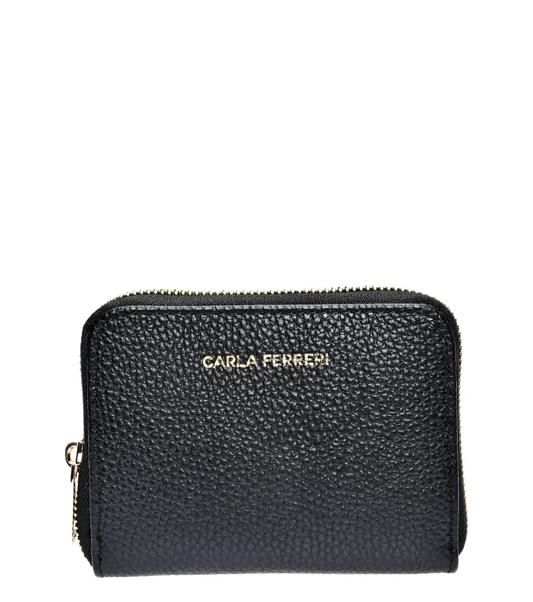Carla Ferreri Portofel negru de damă din piele naturală Alenia Se închide cu fermoar