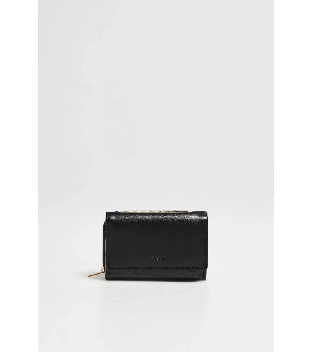 Include un compartiment cu fermoar și mai multe sloturi pentru carduri.