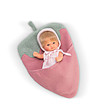 Păpușă bebeluș Chiquita cu salopetă roz în pungă cu căpșuni 20 cm