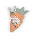 - design: ținută originală cu salopetă cu motive florale, pălărie cu urechi de iepure în același model și o pătură în formă de morcov;