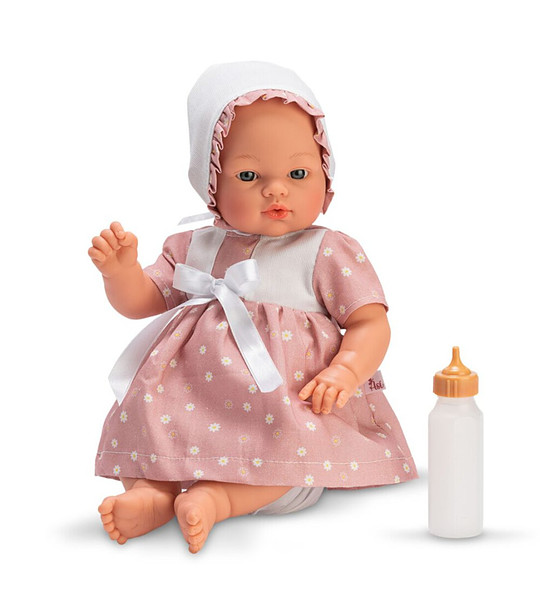 Asi Păpușă bebeluș Coque cu rochie roz cu margarete 36 cm Vă prezentăm o altă păpușă drăguță, Coque, de la compania spaniolă ASI. Păpușa are 36 cm înălțime și are ochi albaștri care nu se închid.