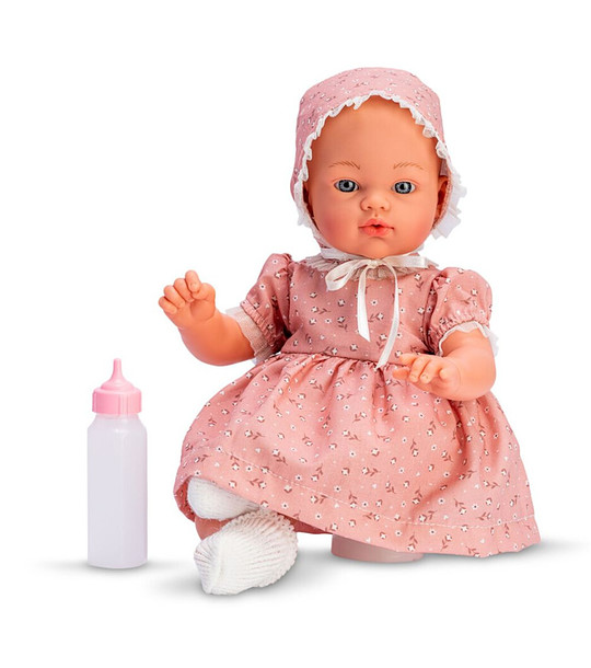 Păpușă bebeluș Coque cu rochie roz cu motive florale 36 cm