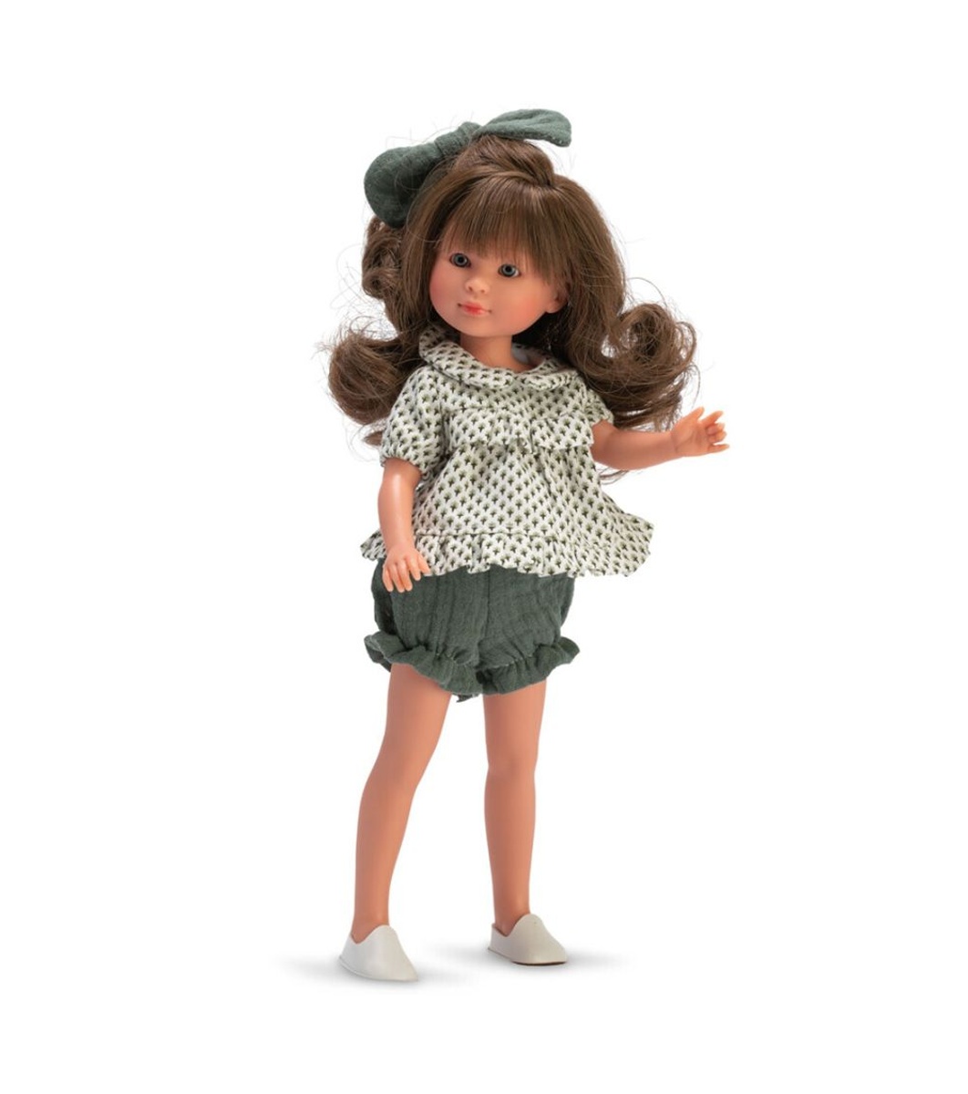 Păpușa Celia cu pantaloni scurți verzi și bluză 30 cm