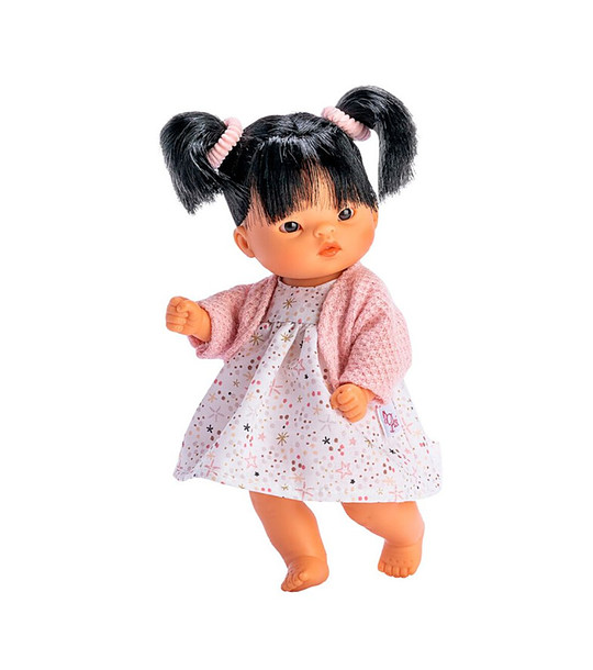 Faceți cunoștință cu păpușa Cheny a mărcii spaniole Asi - are 20 cm înălțime, este îmbrăcată într-o rochie florală și o vestă roz. Această versiune specială combină drăgălășenia binecunoscută a lui Cheny cu și mai mult stil și farmec.