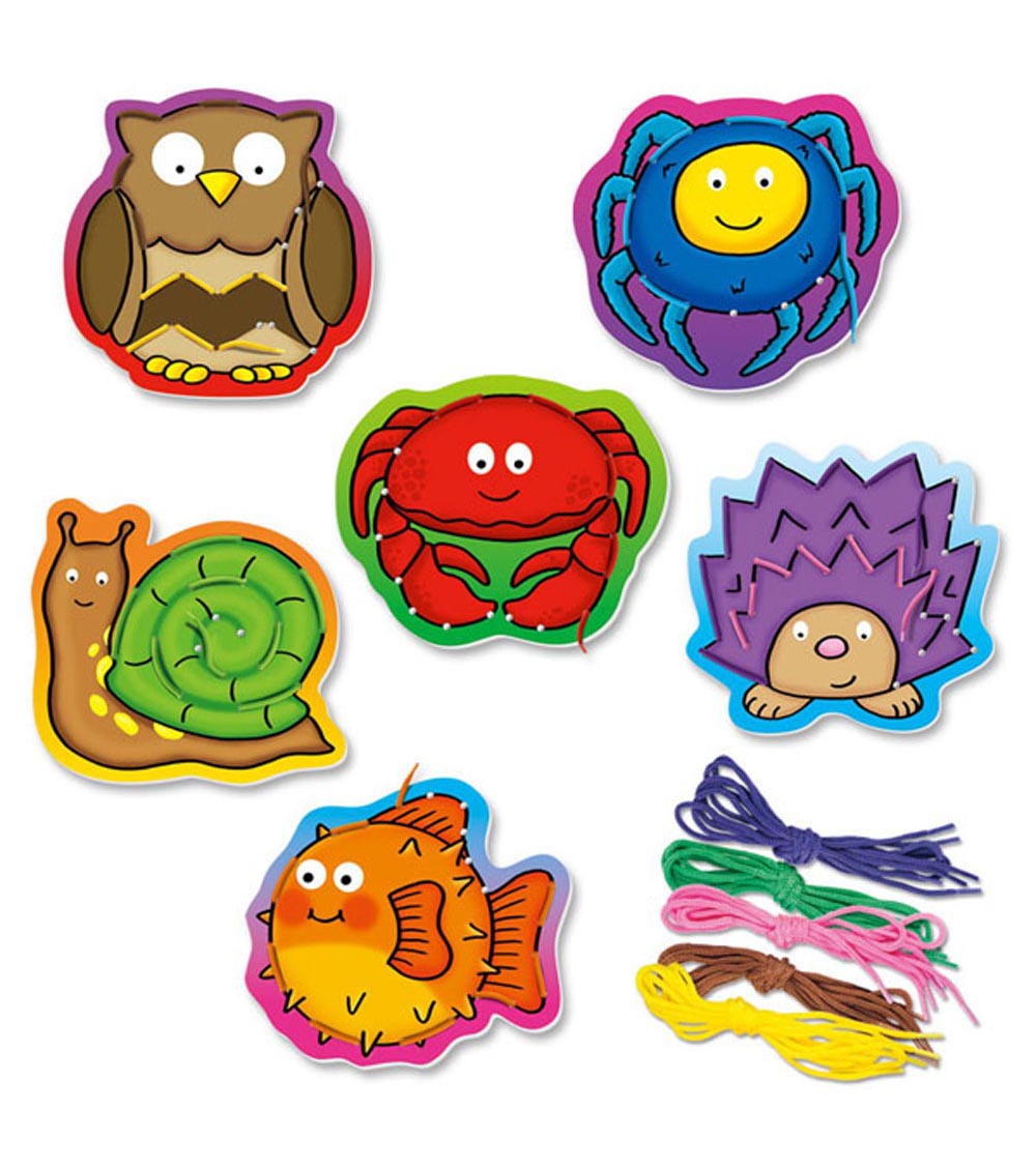 Cu acest set de poze cu animale, copiii se vor distra în timp ce trec legăturile colorate prin găuri.