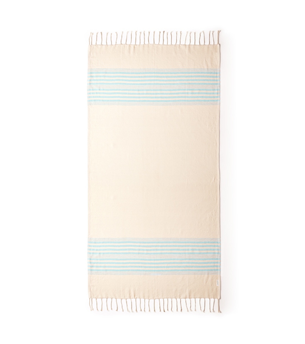 Stamina Prosop sarong bej și albastru, fabricat din bumbac organic Material moale cu franjuri la ambele capete