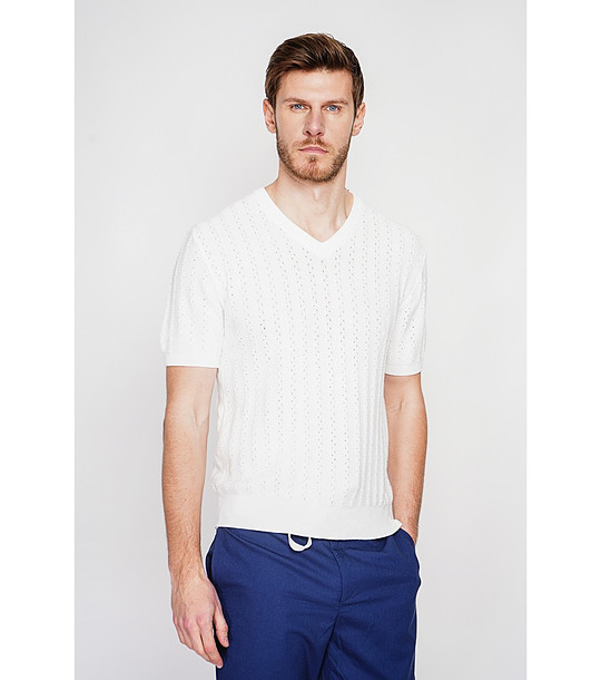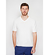 Pulover alb bărbătesc cu mânecă scurtă, confecționat din bumbac organic și in