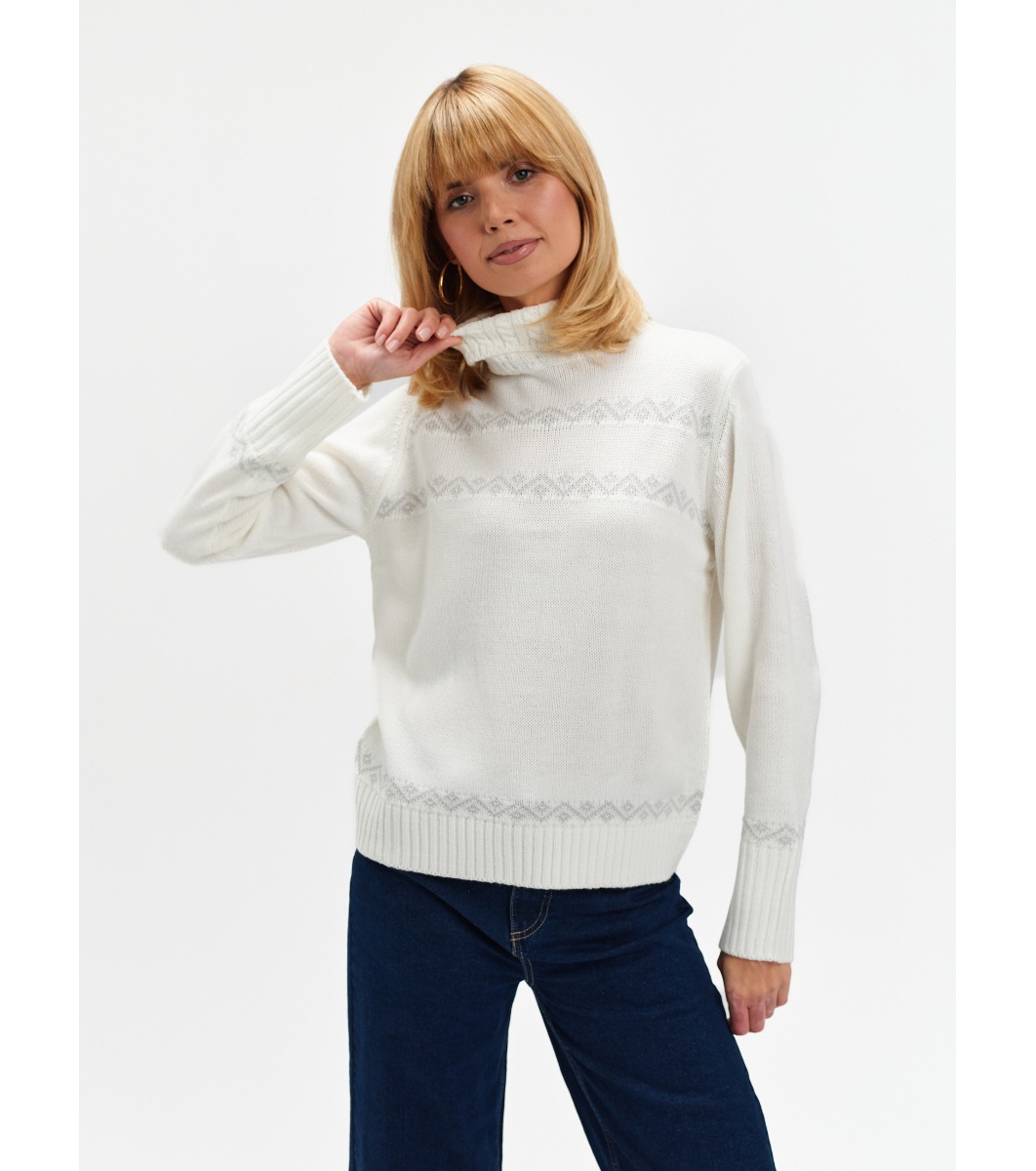 Top Secret Pulover alb cu guler înalt și motiv jacquard Croială dreaptă
