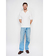 Pulover alb cu mânecă scurtă, din bumbac organic și in