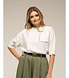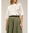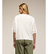 Pulover alb tricotat cu mâneci scurte și buzunar cu aplicație