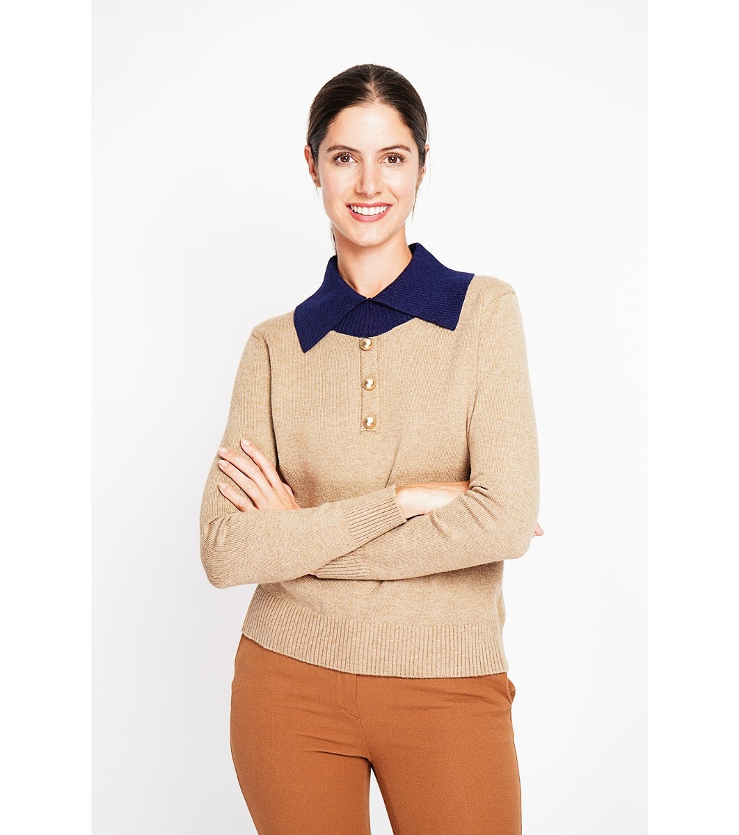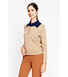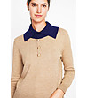 William de Faye Pulover bej de damă cu guler bleumarin Guler clasic și nasturi