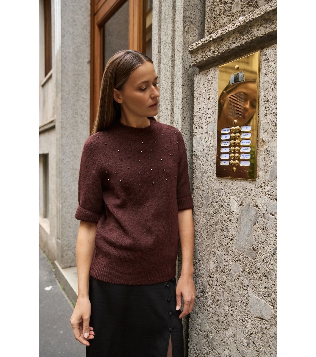 Pulover bordo de damă cu perle