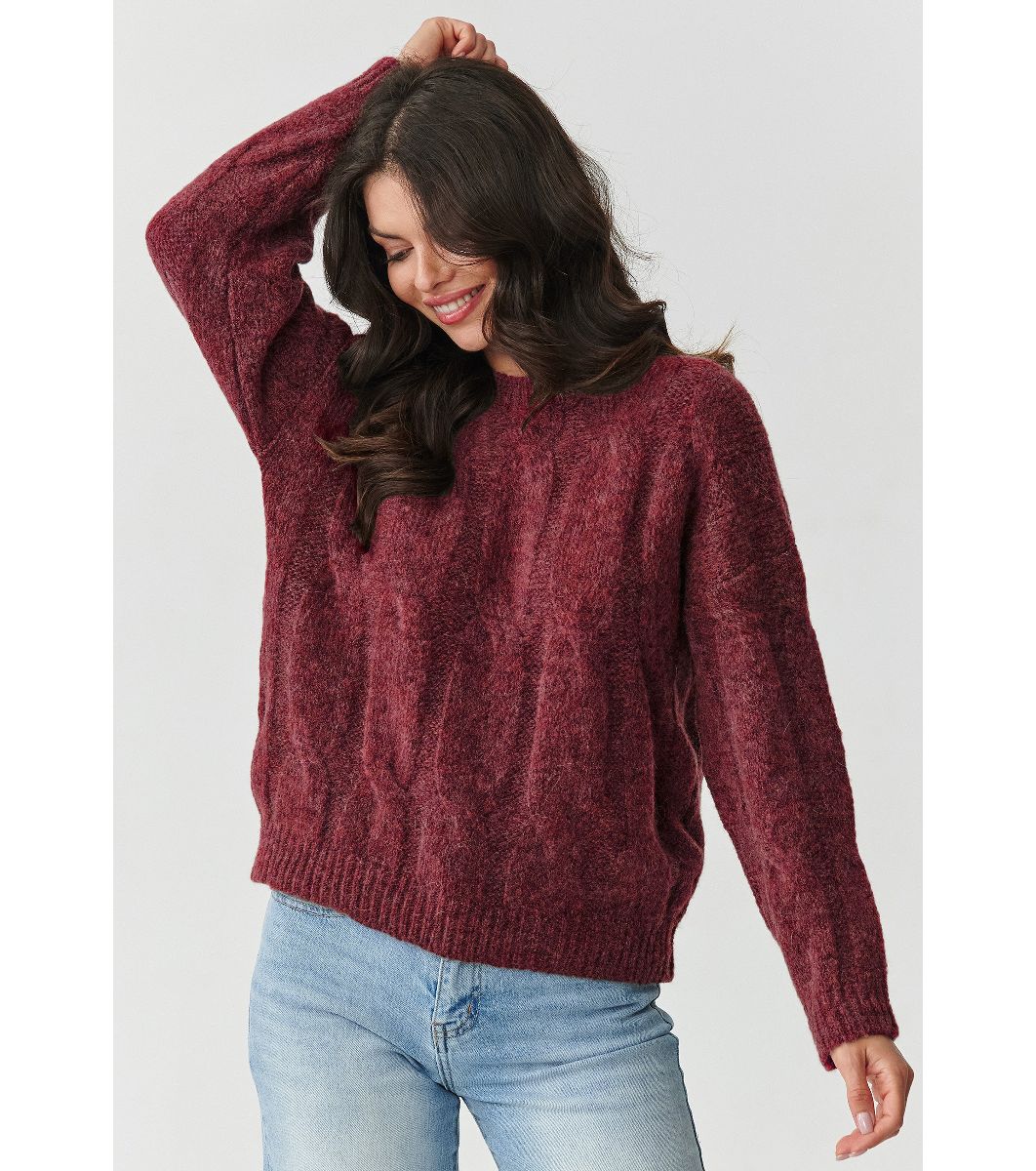 Makadamia Pulover bordo de damă cu tricotaje mari Pulover cu lână și mohair