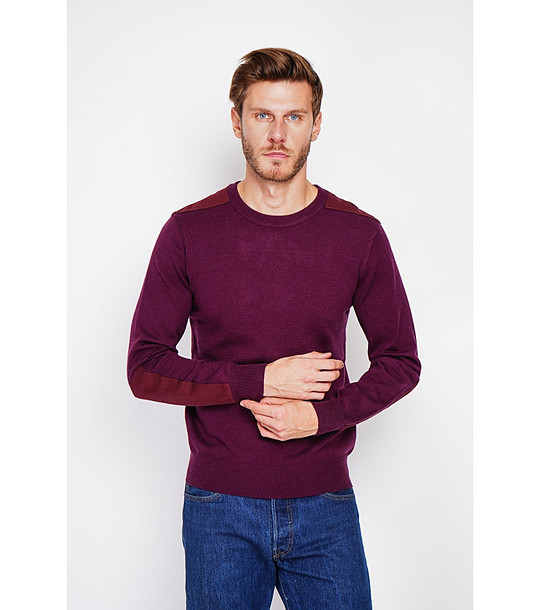 C&Jo Pulover bărbătesc bordo cu elemente contrastante Pulover tricotat fin cu elemente textile pe umeri și mâneci