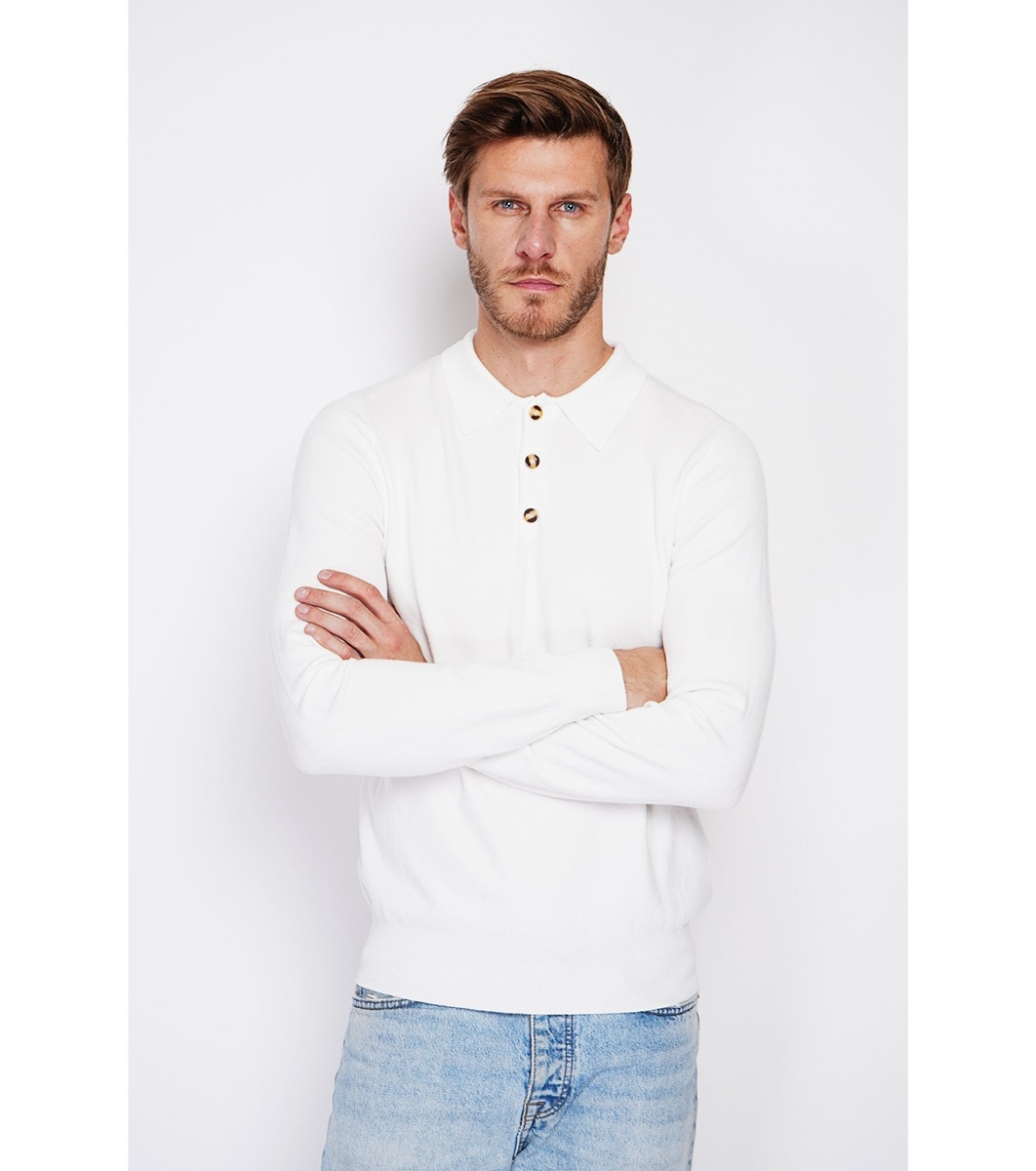 William de Faye Pulover bărbătesc cu guler, culoare crem Guler clasic și nasturi