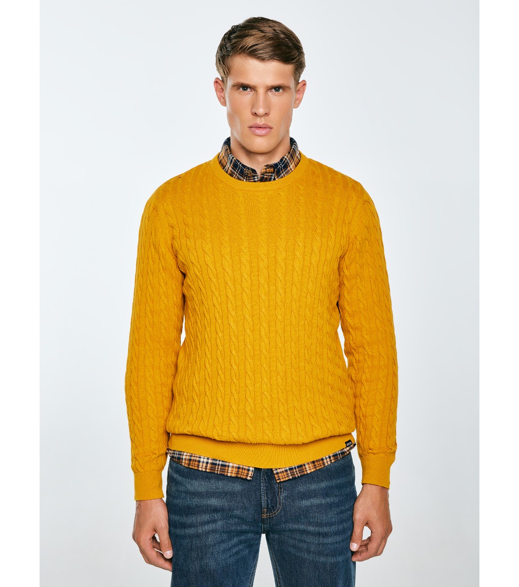 Big Star Pulover bărbătesc din bumbac, de culoare galbenă, AMARIS Pulover bărbătesc tricotat, cu decolteu rotund.