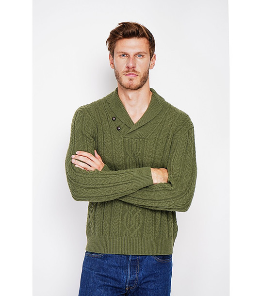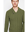 C&Jo Pulover bărbătesc verde cu guler șal Decolteu în V cu guler șal