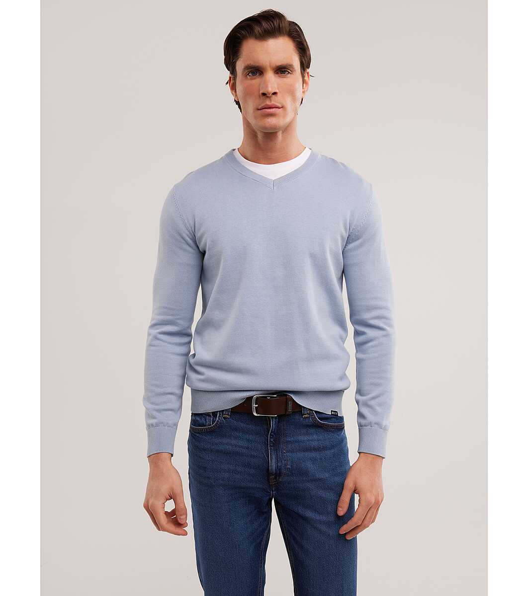 Big Star Pulover de bărbați albastru deschis Decolteu în V