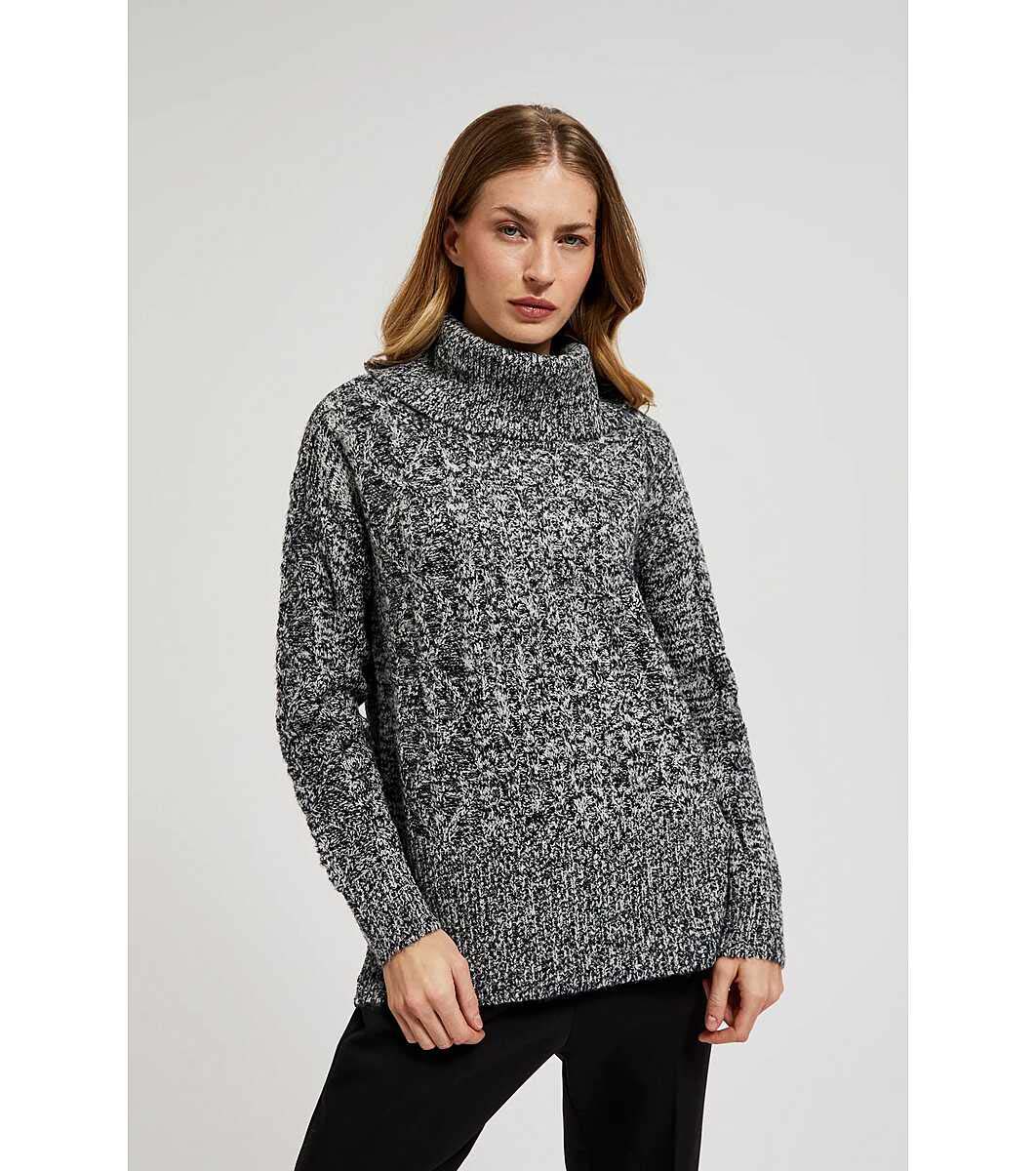 Moodo Pulover de damă Bonita Black Melange Guler polo