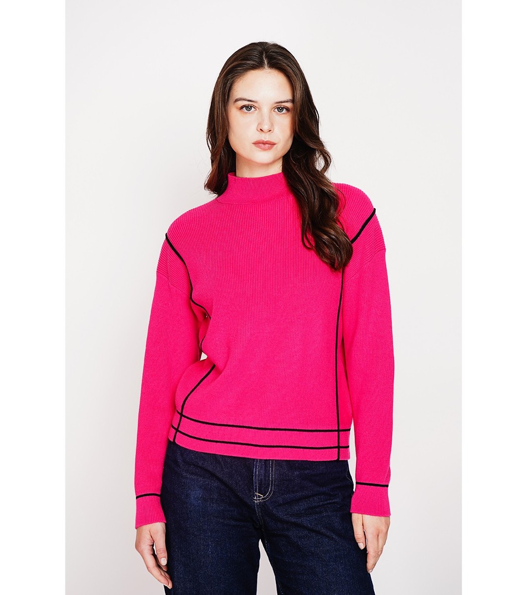C&Jo Pulover de damă Cyclamen cu garnitură neagră Guler polo