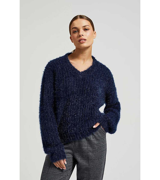 Moodo Pulover de damă Glinda bleumarin Decolteu în V