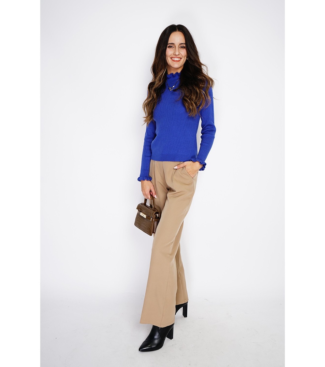 C&Jo Pulover de damă albastru regal cu volane Material cu cașmir și mătase