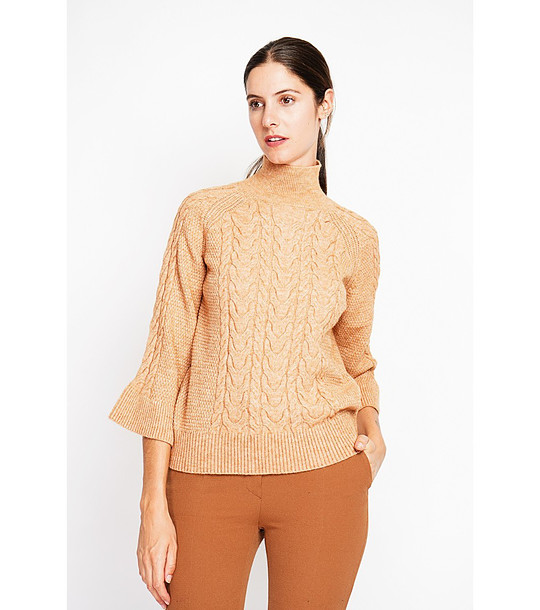 Assuili Pulover de damă bej cu tricotaje Guler polo