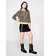 C&Jo Pulover de damă bej și negru cu modele leopard Guler înalt