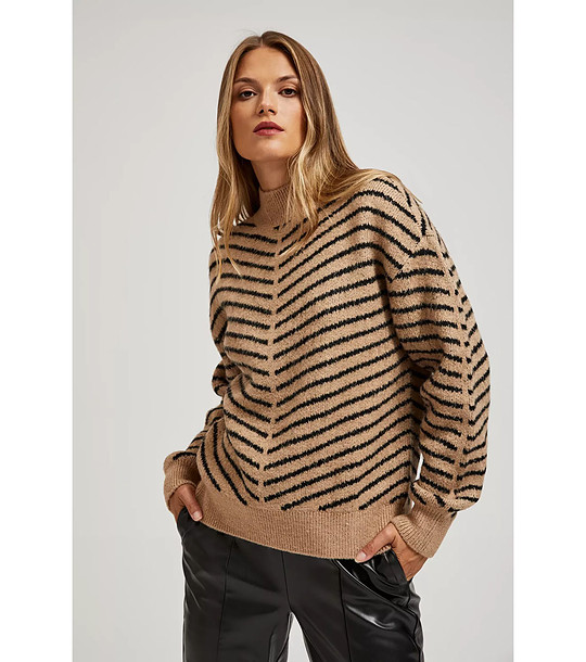 Moodo Pulover de damă cu dungi bej și negre Decolteu înalt