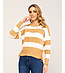 Tantra Pulover de damă cu dungi bej-albe și fermoare Decolteu rotund