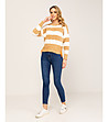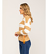 Pulover de damă cu dungi bej-albe și fermoare
