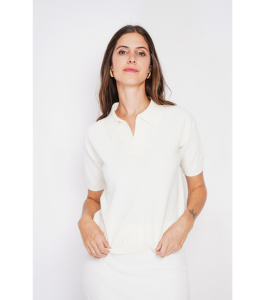 William de Faye Pulover de damă de culoare crem Decolteu în V cu guler