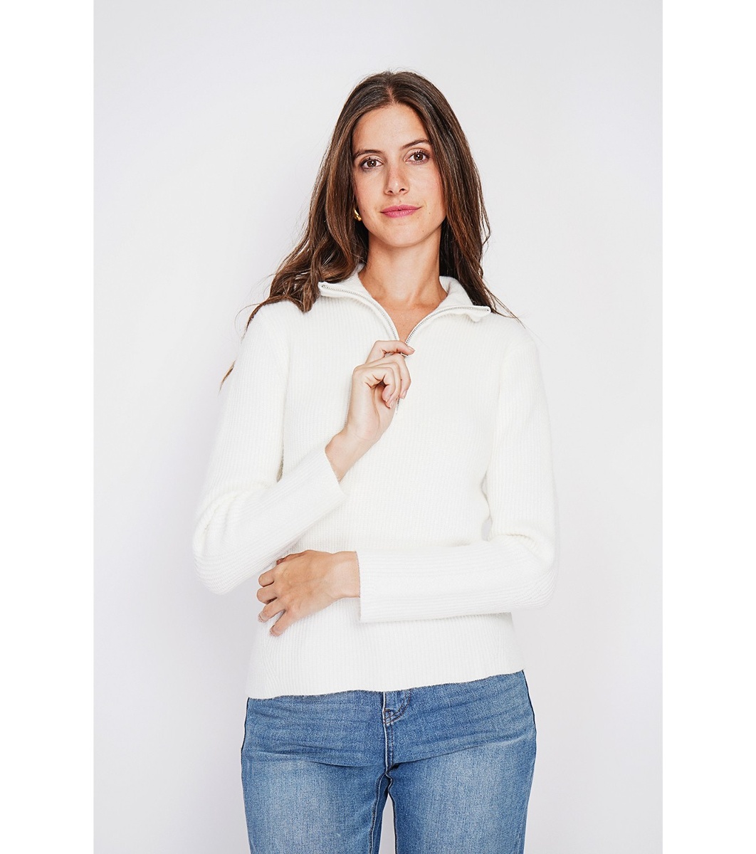 William de Faye Pulover de damă de culoare crem Guler polo cu fermoar