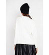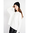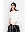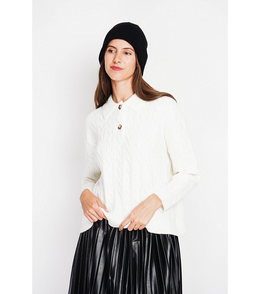 Assuili Pulover de damă de culoare crem cu tricotaje Decolteu în V cu guler clasic și nasturi