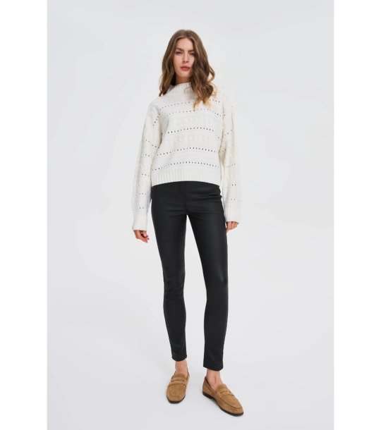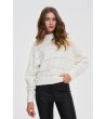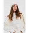 Moodo Pulover de damă de culoare fildeș cu margini ajurate Guler înalt