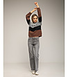 Pulover de damă gri, maro și negru cu lână