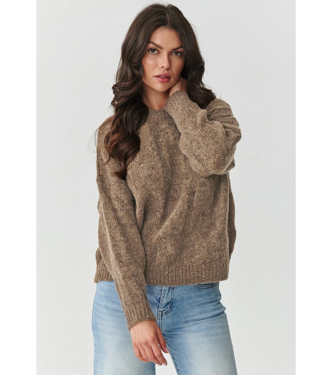 Pulover de damă într-o nuanță maro cu tricotaje mari