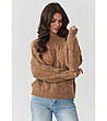 Pulover de damă ocru cu tricotaje mari