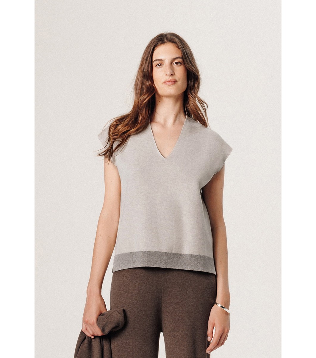 Pulover ecru de damă cu decolteu în V Tina
