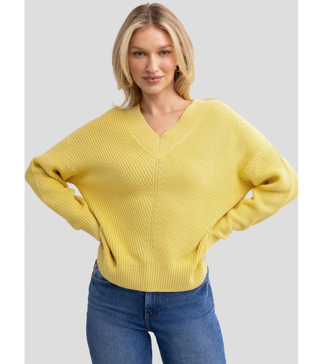 Big Star Pulover galben de damă cu bumbac CYNTIANA Decolteu în V