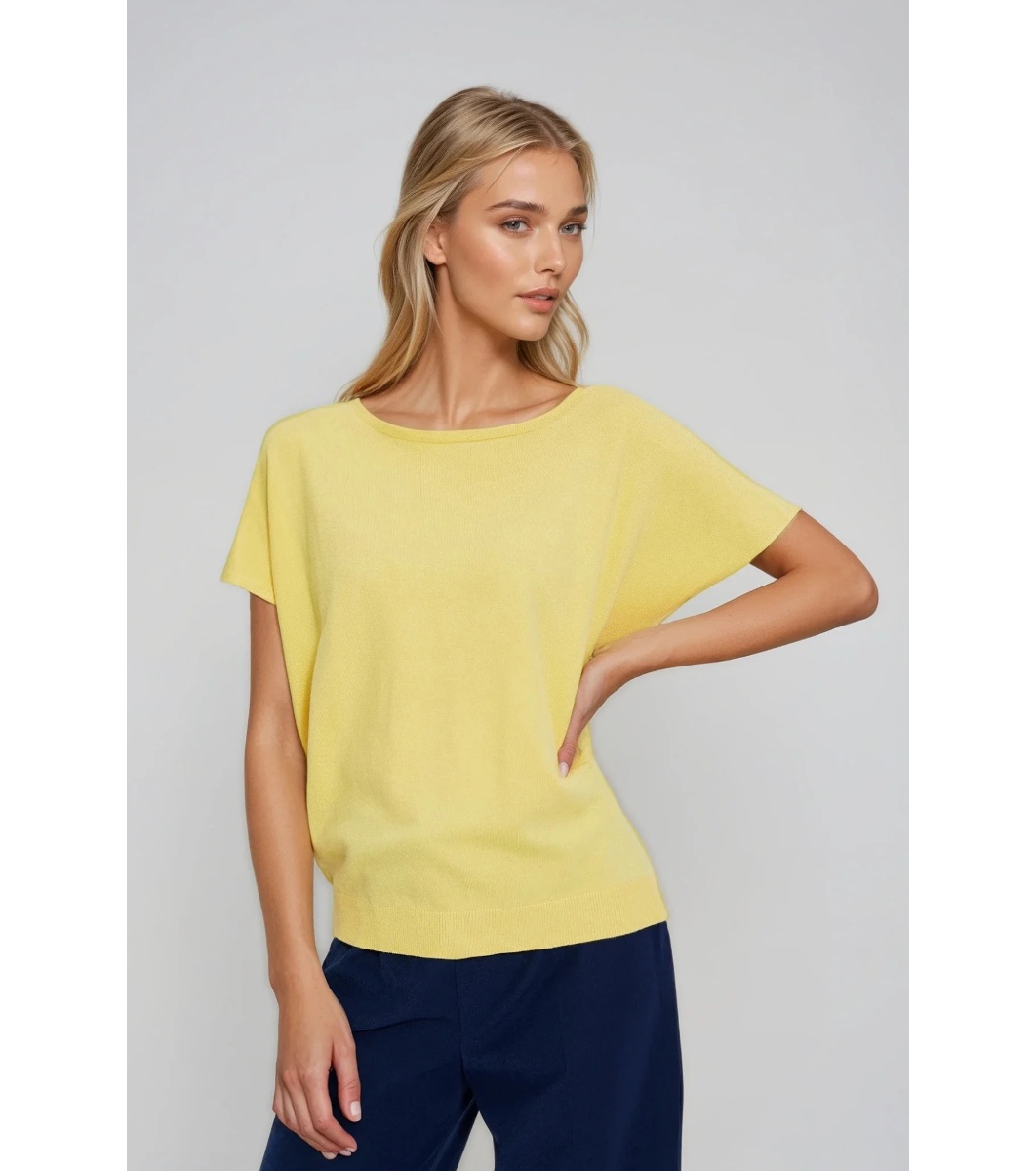 Moodo Pulover galben de damă cu mânecă scurtă Pulover cu croială dreaptă și lejeră