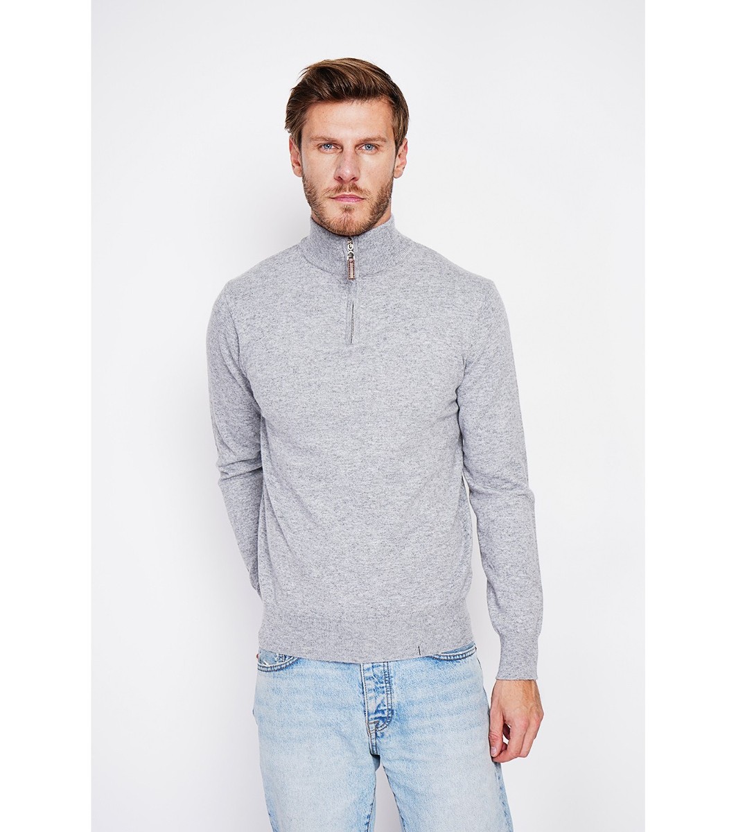 C&Jo Pulover gri bărbătesc cu guler înalt și fermoar Guler înalt cu fermoar