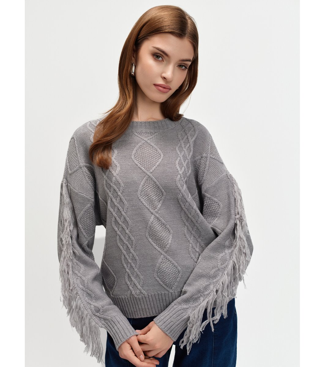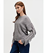 Pulover gri cu franjuri și dantelă
