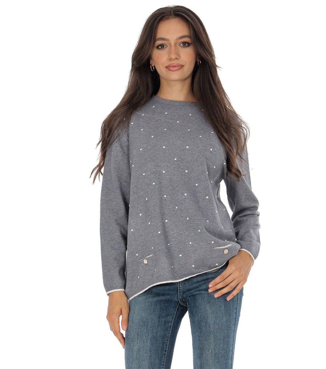 Pulover gri de damă cu buline delicate