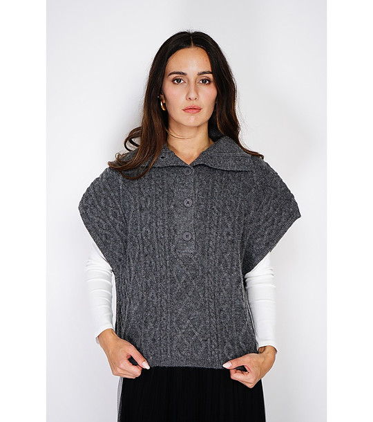 C&Jo Pulover gri de damă cu guler Guler clasic și nasturi