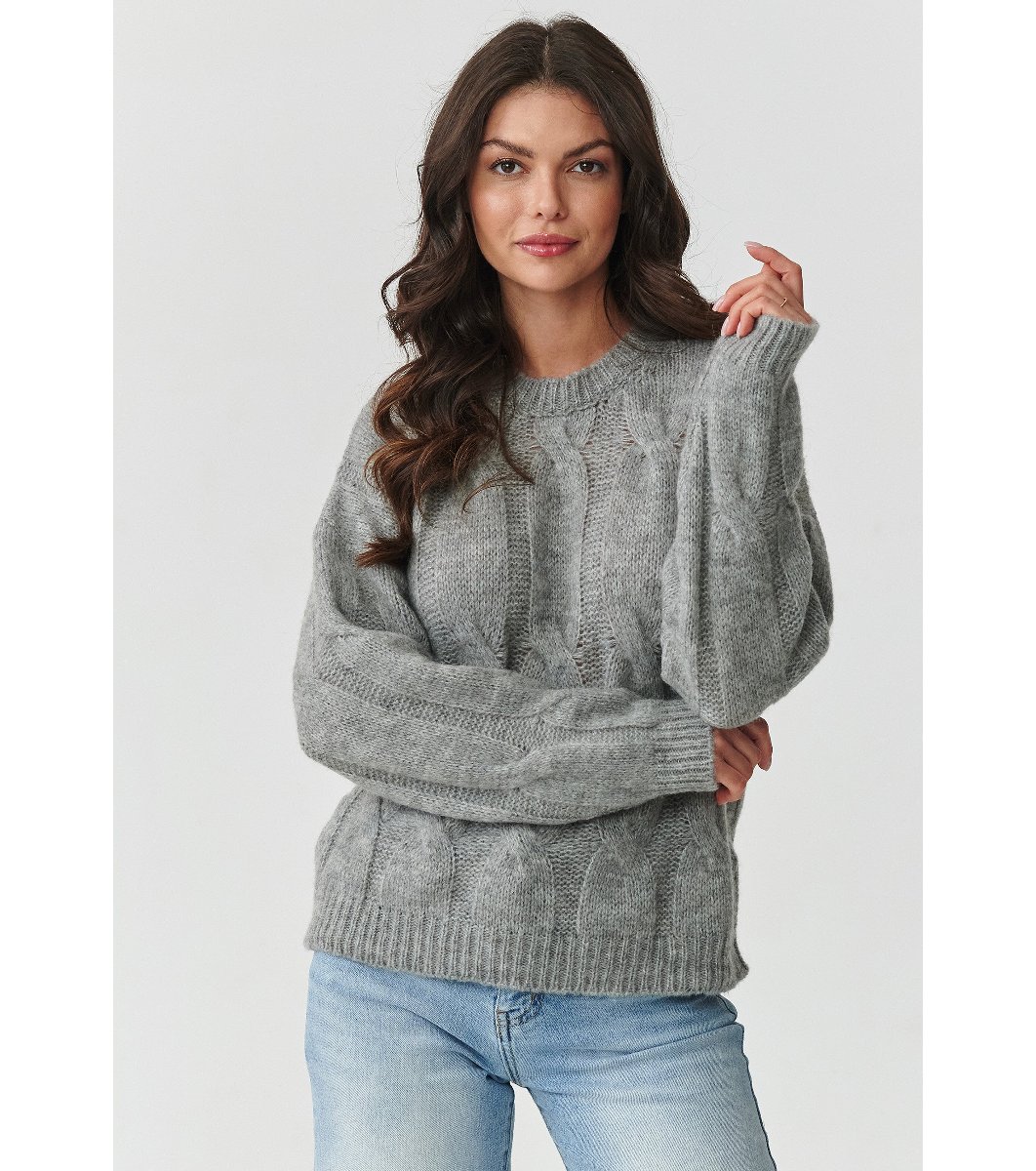Makadamia Pulover gri de damă cu tricotaje largi Pulover cu lână și mohair