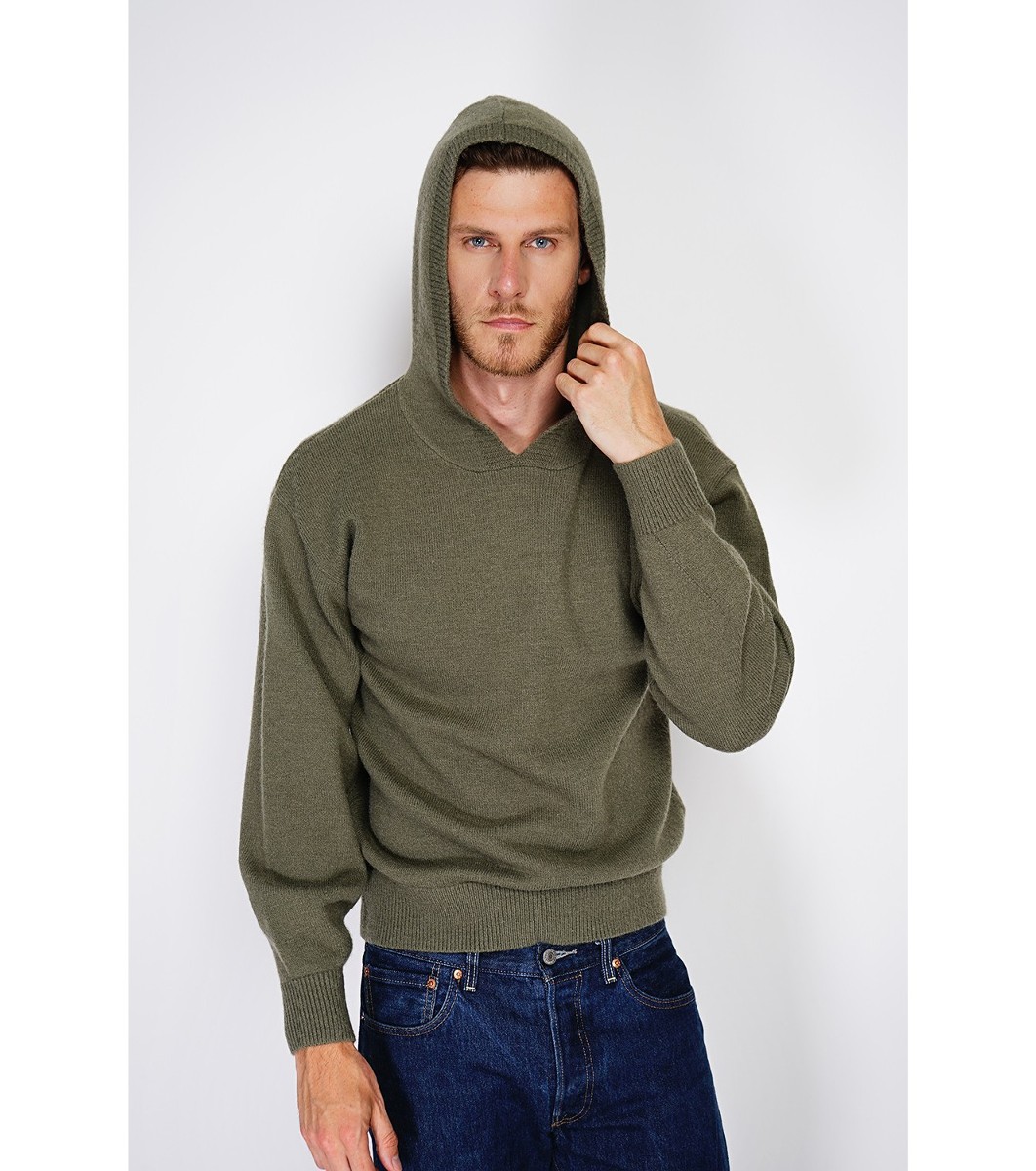C&Jo Pulover kaki bărbătesc cu glugă Tricotaj fin