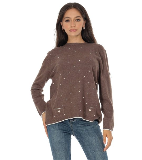 Roh Pulover maro de damă cu buline delicate Pulover fin tricotat, moale la atingere, ideal pentru a vă oferi căldură și stil în lunile mai reci.